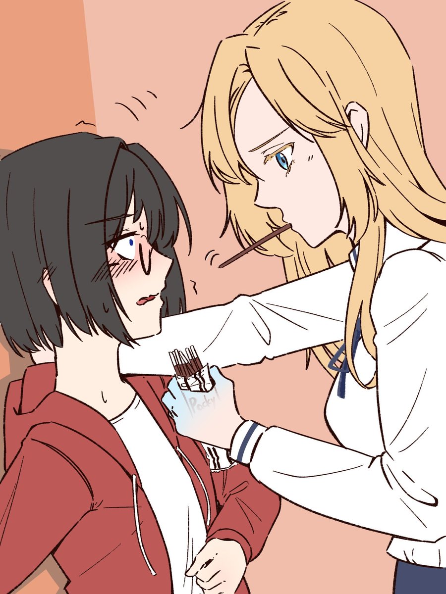 #ポッキーの日 🐤「なんで逃げるの」 🐟「顔が良いからだよ!(いやこのご時世そんな粘膜接触的なあれがどうたらこうたら)」
