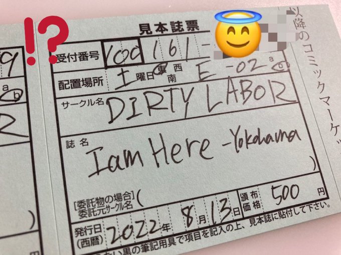 あなたのサークル「DIRTY LABOR」は、コミックマーケット101で「土曜日西地区 "ひ " 30b」に配置されました!コミケWebカタログにてスペース配置場所公開中です! webcatalog.circle.ms/Circle/Map/168… #C101WebCatalog 冬コミよろしくーーーーーーーーーーーーーーーーッ!!!!!!!!!!!!!!!!