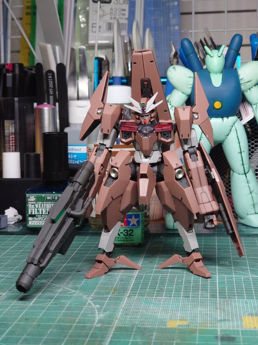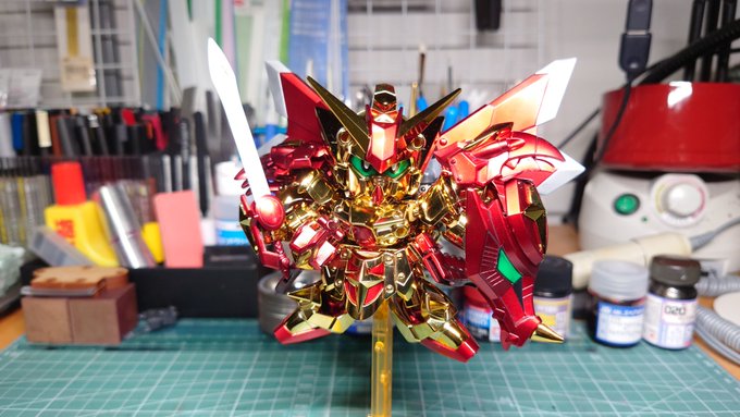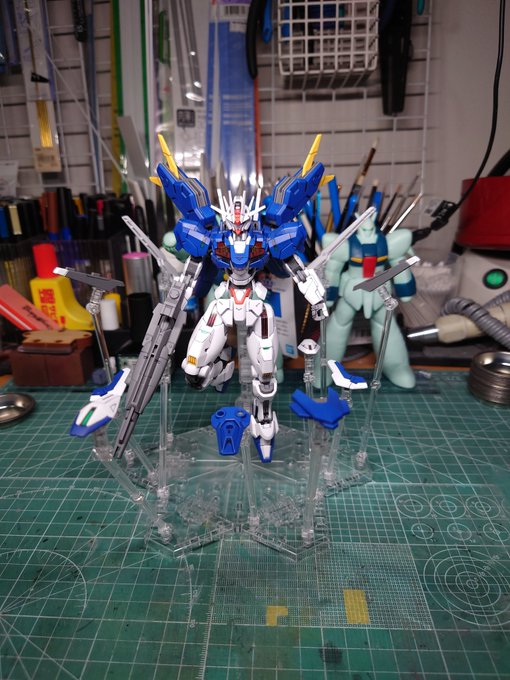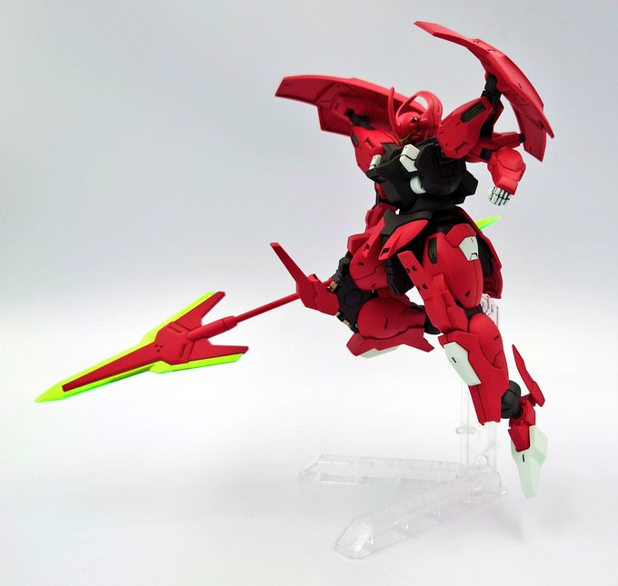 ディランザ グエル専用機 デザイナーズカラー完成しました。 ・形部さんのイラストカラーを再現 ・羽飾りのモールド掘り直し ・箱絵のように右腕を伸ばして槍を握れるように槍を延長 @ippeigyoubu さんに捧ぐ #水星の魔女 #ガンダム #ガンプラ好きと繋がりたい twitter.com/ippeigyoubu/st…