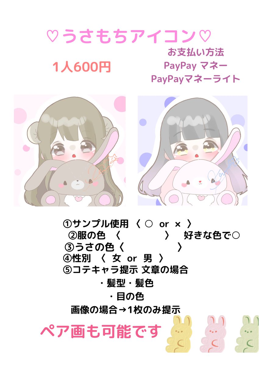ᐢ. ̫ .ᐢㅤうさもち量産ᐢ. ̫ .ᐢㅤ 2枚目の必要事項記載してDMください 1人600𝒆𝒏𝒏 納期期限3日~1週間 ペア画も可能です⭕️ #有償依頼 #量産依頼 #イラスト依頼募集中 #kn0irst #絵描きさんと繋がりたい