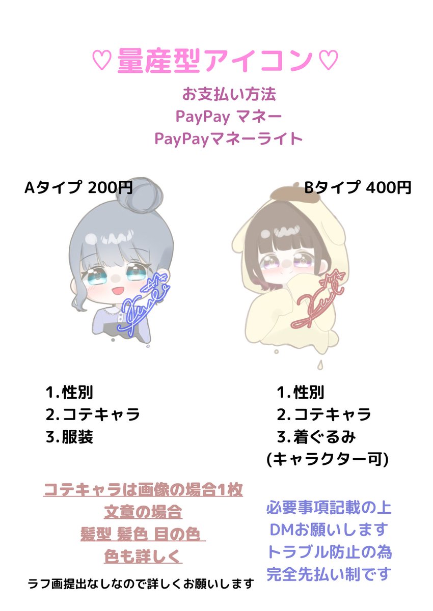 格安量産受付開始 2枚目の必要事項記載してDMください Aタイプ200𝒆𝒏𝒏 Bタイプ400𝒆𝒏𝒏 納期期限3日 ペア画も可能です⭕️ 先払いのみ その他リトリン見てください👀 #有償依頼 #量産依頼 #イラスト依頼募集中 #kn0irst ◀︎ほかの依頼表 #絵描きさんと繋がりたい