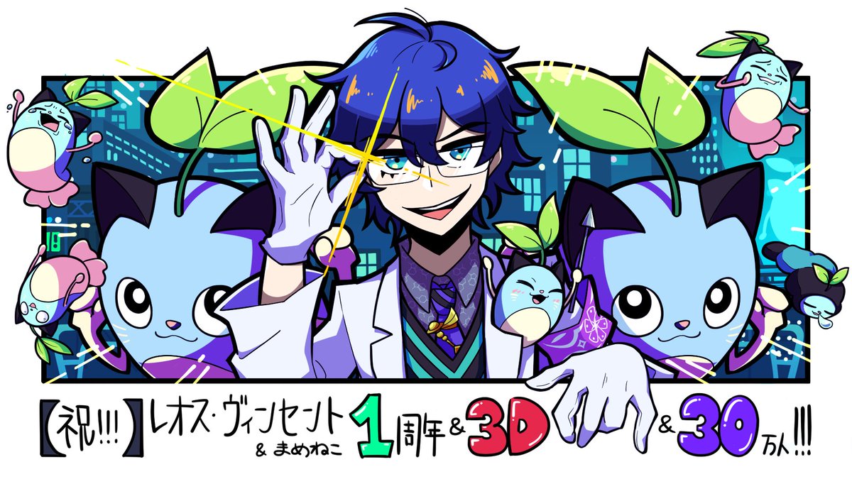 1周年3D登録者30万人おめでとうございました!!!!!🎉🎉🎉🥼🌱😺(大遅刻) #まめねことレオス