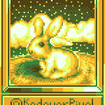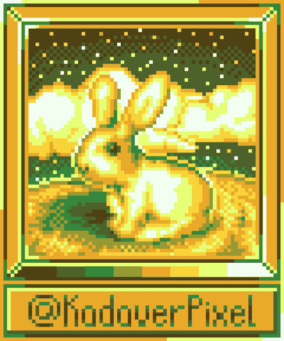 Daily Pixelart, S2 E16 The Golden Rabbit of Grivonshire is one of many old tharefalquine legends. It is believed to be an omen of luck and prosperity. 8 Colours, 64px², 80px*96px frame #PixelArt #art #WildAnimal #pixel_dailies #dailyart #bunny #dndart #ドット絵