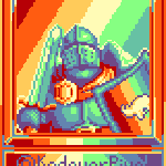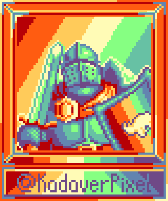 Daily Pixelart, S2 E28 The Knights of the Rainbow Rhinoceros salute you, and wish everyone a happy Pride Month! ❤️🧡💛💚💙💜 8 Colours, 64px², 80px*96px frame #pixelart #art #pride #knight #pixel_dailies #pridemonth2022 #PrideMonth #dndart #DnD #rainbow #ドット絵