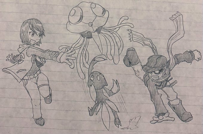 自分の古い過去絵を掘り起こしてた結果出てきた(わーるどさん @worldwideclimb のとこのクロノくんとバトル
