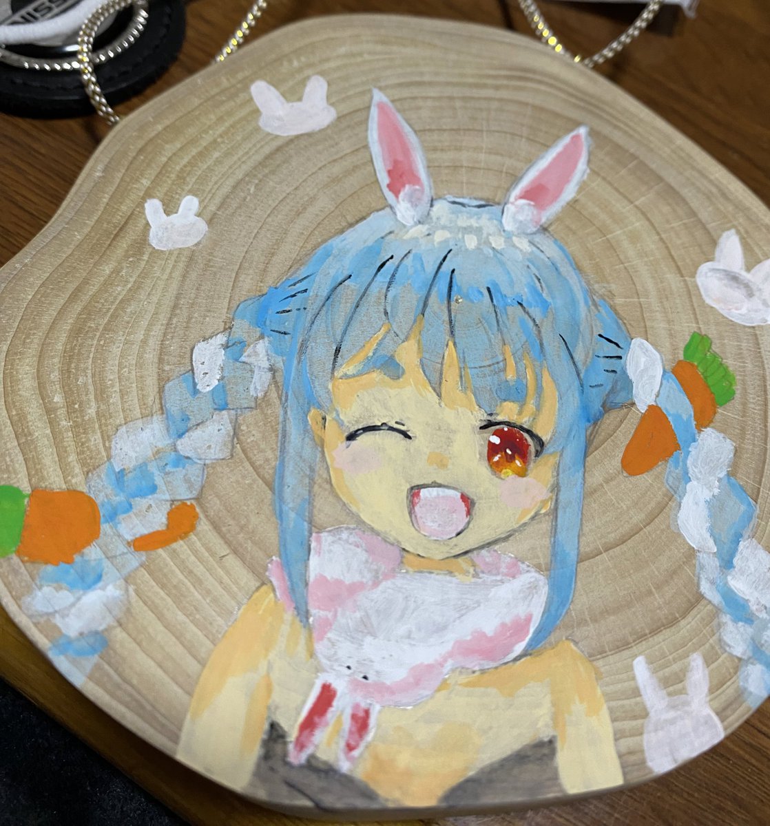 1 0 #ぺこらーと 来年は兎!! うさぎと言えば兎田ぺこら!!! 初めて木にお絵描き!! 絵の具で塗るの大変やった…( ˙-˙ ) 22/12/18 16:47