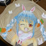 #ぺこらーと 来年は兎!! うさぎと言えば兎田ぺこら!!! 初めて木にお絵描き!! 絵の具で塗るの大変やった…( ˙-˙ )