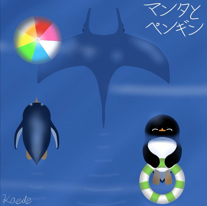 1 10 今日のペンギン〘339〙 『マンタとペンギン』 #ペンギン #イラスト #ペンギンは素晴らしい #マンタ 23/03/23 22:05