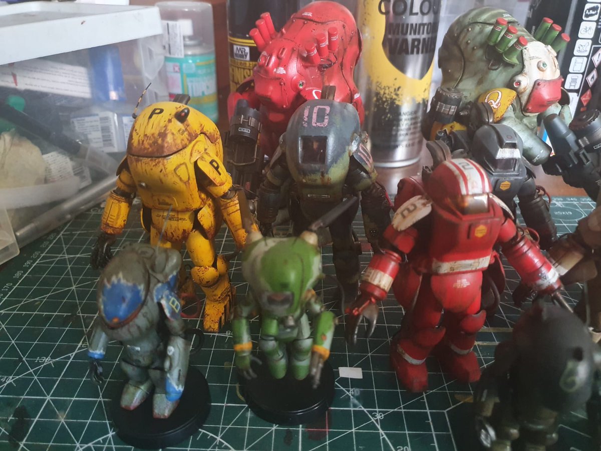 My humble SF3D/Maschinen Krieger collection so far, all textured and painted by me, also the backlog! #sf3dオリジナル #maschinenkrieger #kowyokoyama #plamodel #scalemodel #マシーネンクリーガー #マシーネン