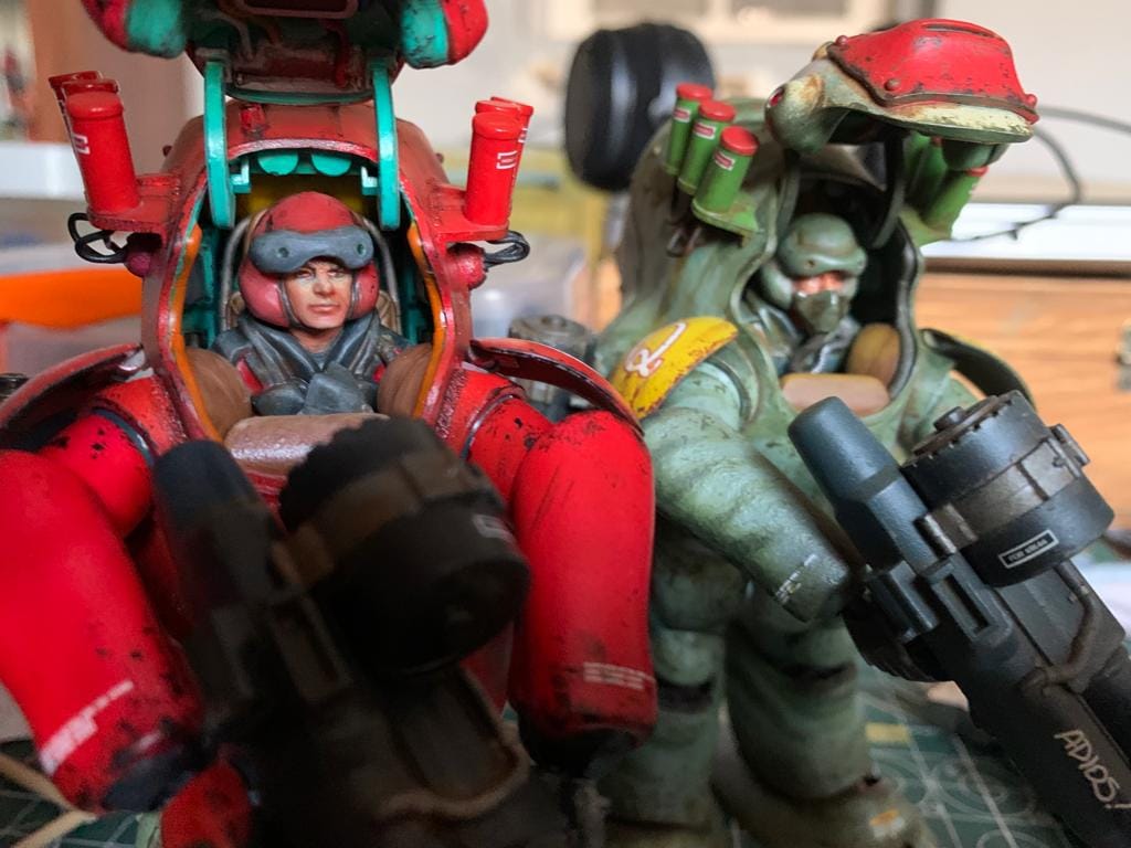 Another A.F.S. mkII, painted with vallejo acrylics and ammo mig weathering , it's kinda sus now #Art #sf3d #マシーネン #マシーネンクリーガー #maschinenkrieger #maschinen #mak #kowyokoyama #kindasus