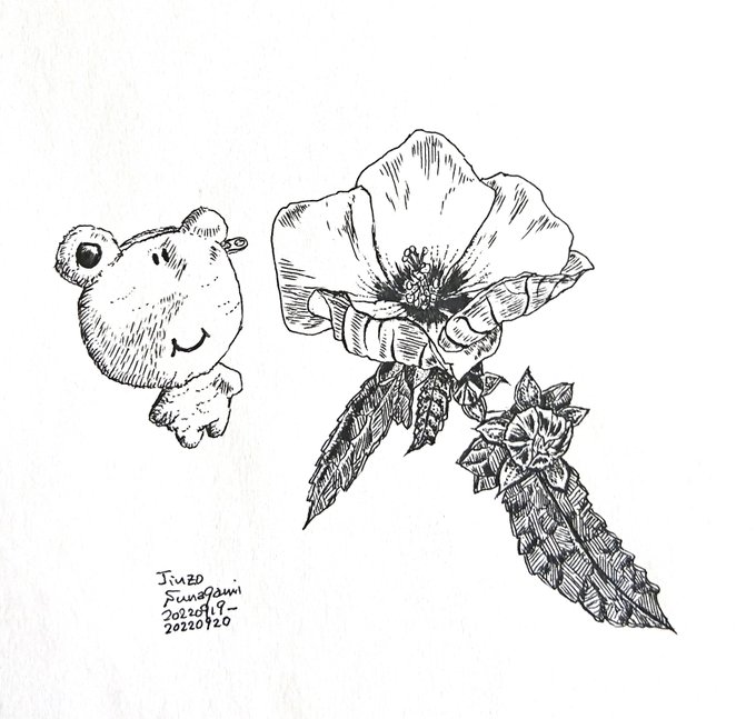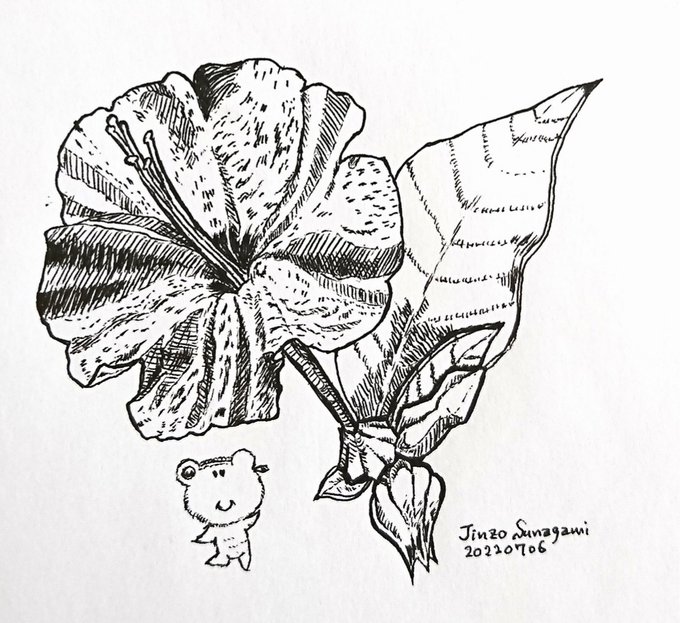 おはようございます Good morning Buenos dias 昨日は、84のいいねと、たいへん貴重な9リツイート、フォローフォロバにリプを、有難うございました。 今日は、ヤノネボンテンカとかえるの、ペン画を描きました。花屋の脇で、力強く咲いていました。 #illusRT #みんなで楽しむTwitter展覧会