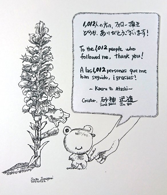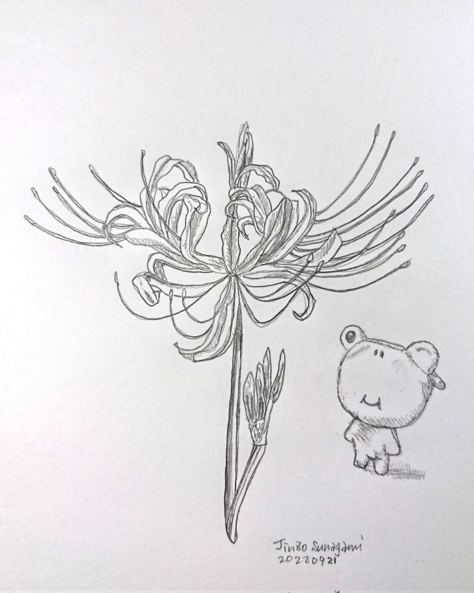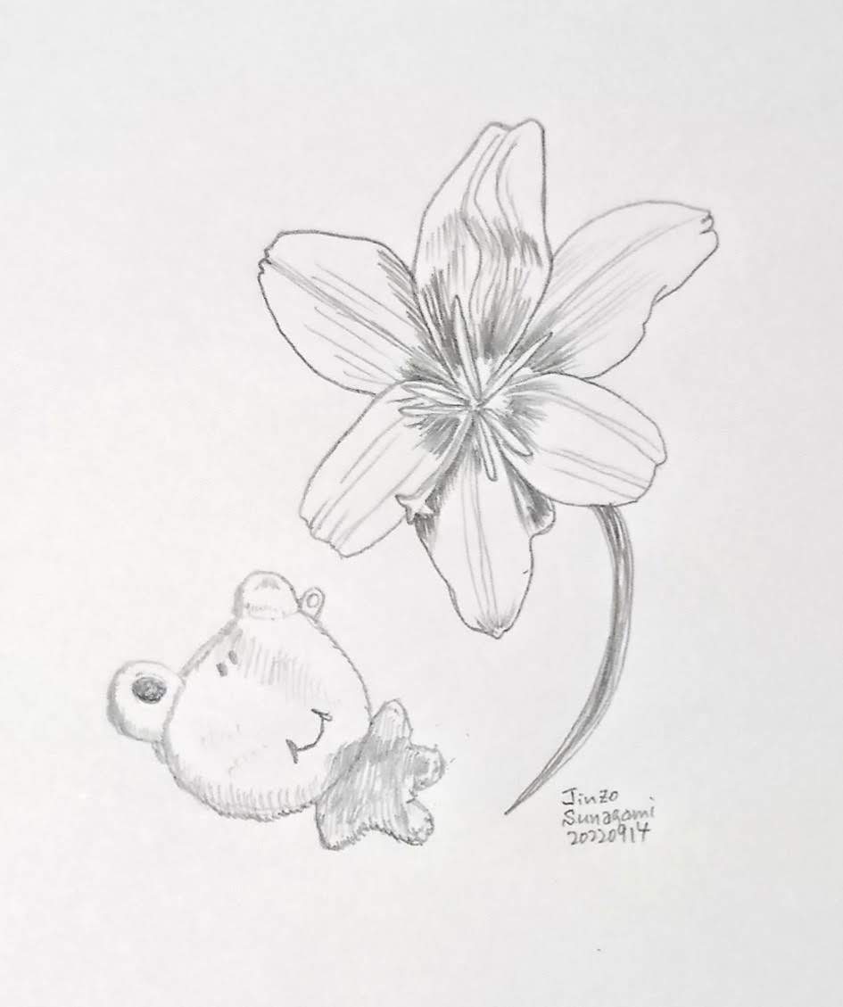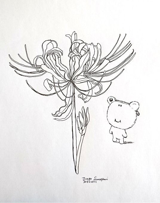 おはようございます GM Buenos dias 昨日は、120ものいいねと、貴重な17ものリツイート、フォローフォロバに、嬉しいリプを有難うございました。 今日は9月の、サフランモドキとかえるの、ラフを再掲します。 ご近所で豪華に咲いていました。 #ARTRT #落書きギルド #みんなで楽しむTwitter展覧会