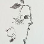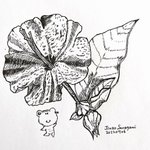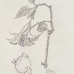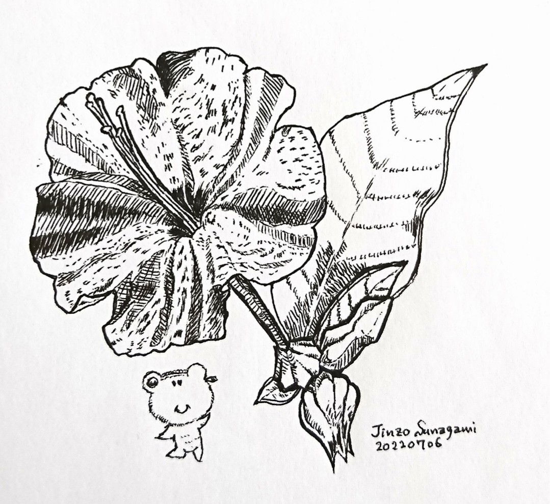 おはようございます GM Buenos dias 昨日は、100ものいいねと貴重な14ものリツイート、フォローフォロバを有難うございました。 今日は、コダチチョウセンアサガオとかえるの、ペン線画を描きました。 晩秋に、ラッパのように、咲いていました。 #ARTRT #みんなで楽しむTwitter展覧会