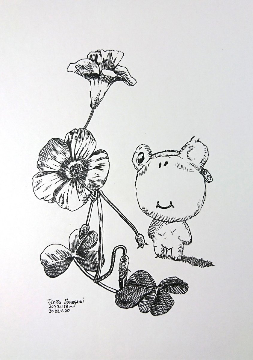 おはようございます GM Buenos dias 昨日は、110ものいいねと、貴重な15のリツイート、フォローフォロバにリプを、有難うございました。 今日は、ハナカタバミとかえるの、ペン線画を、描きました。 楽しそうに、忙しそうに、咲いていました。 $picrt #みんなで楽しむTwitter展覧会