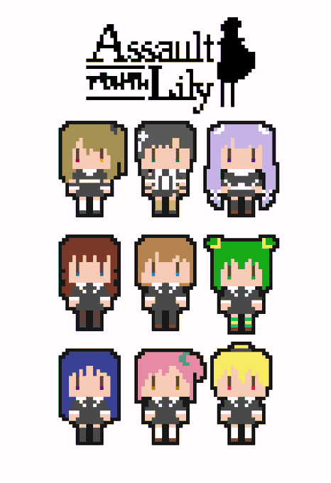 指のケガが治るまで筆塗りもできないので、気晴らしにドット絵たずさんを描いている #RPGツクールXP 準拠 アニメーションさせなければそれなりに描けるのだ、アニメーションさせなければ #アサルトリリィ #アサルトリリィ_FA #安藤鶴紗