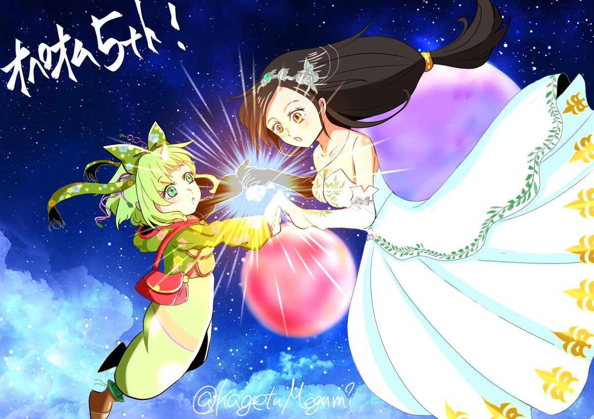明日ちょっと上げられないと思うので今日あげちゃいます🤗 バレンタインも兼ねて夫婦で演奏🥰 CCの出会った頃の2人のつもりで描いたので少し幼めに描きました✨ #シアトリズムファイナルバーライン #バレンタイン
