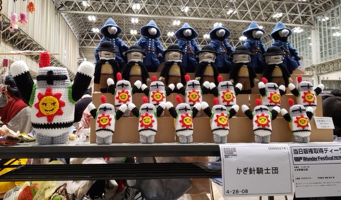 ワンダーフェスティバル2020冬 卓番出ました! 4-28-08 会場の角の角です。 ソラールさん祭り(L 、M、ミニミニ) ガスコイン神父、アイリーンのあみぐるみを並べます! #wf2020w #KagibariKishidan #KagibariKnights