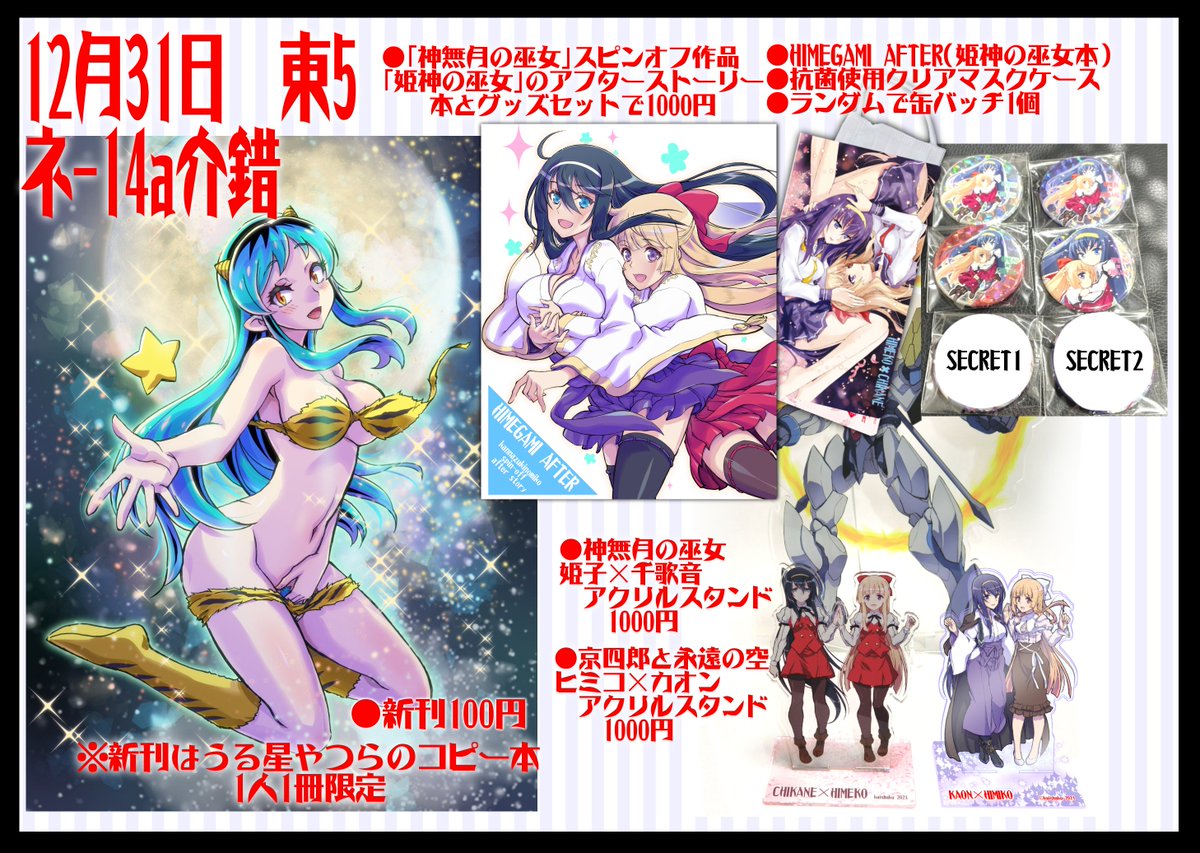 コミックマーケット99の30日A-22aに介錯も参加します。 神無月の巫女のスピンオフ「姫神の巫女」の同人誌とグッズのセット等になります。 お釣りを出さないため1000円になりますが、 本のみはとら・メロンで通販しますのでよろしくお願いします ec.toranoana.jp/tora_r/ec/item… melonbooks.co.jp/detail/detail.…