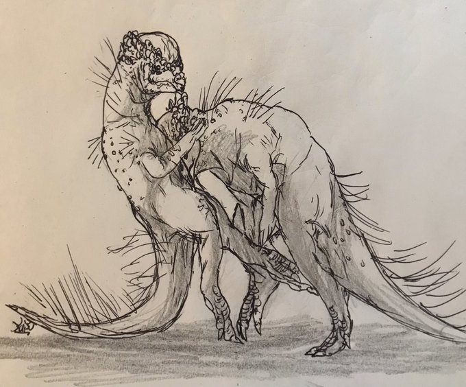 Tonight's my art/WIP dump so enjoy these two, Second one is the speculative sauropod I just tweeted about Sauromimus's display to potential mates. And a WIP Arizonasaurus. #paleoart #speculativeevolution #sauropod #arizonasaurus
