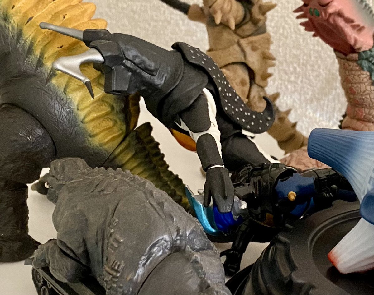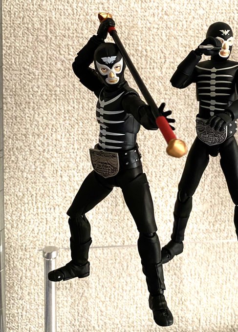 リボルケインは「杖」ということを知って、色々調べたら世には「杖術」という武術があることを知った。 というわけで、試しにショッカー戦闘員に見つけた杖術の画像のポーズを取らせてみたら… うん、かっこいいね😄✨ #フィギュアーツ写真部 #杖術