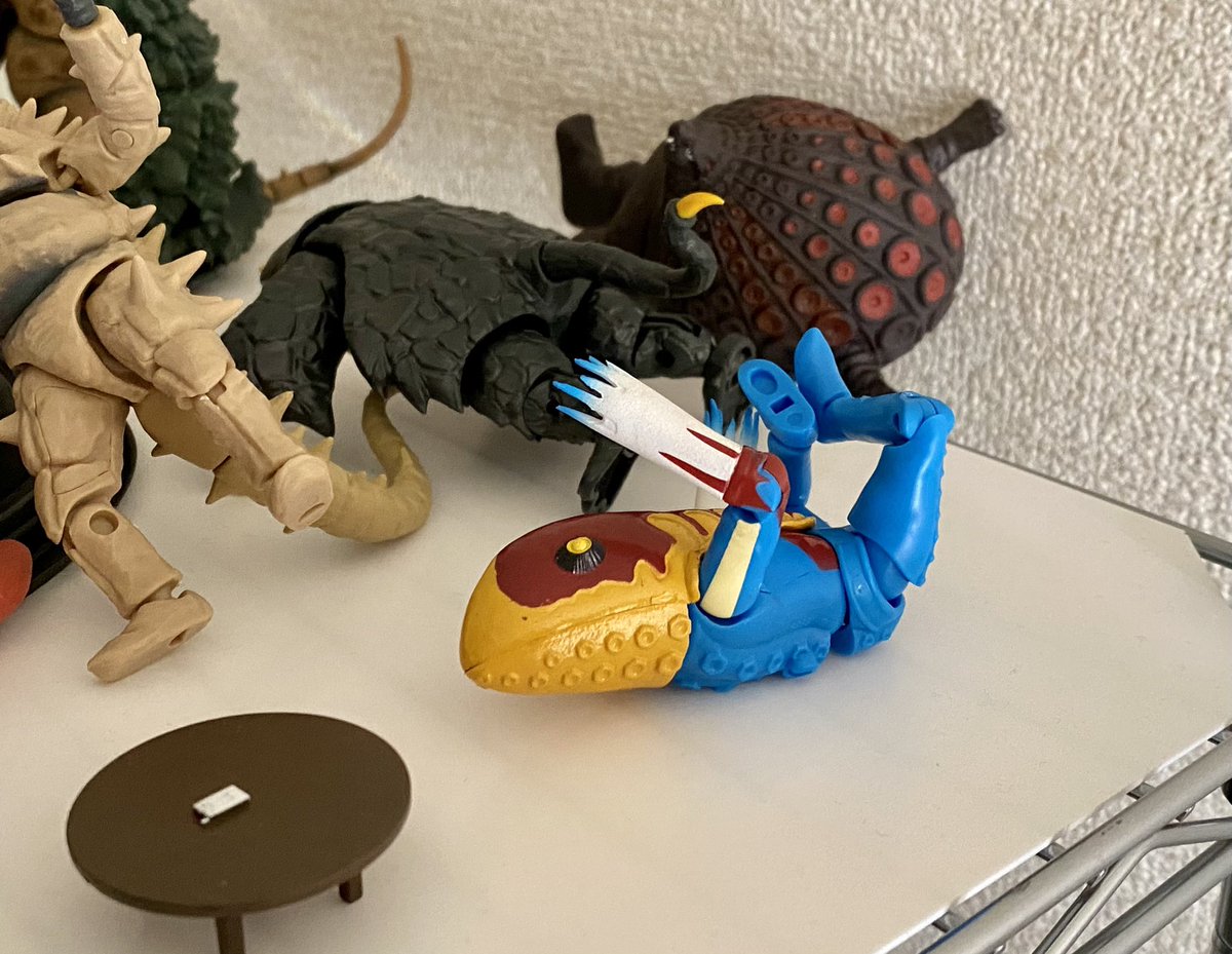 やっと見つけた蟷螂ガチャ。 普通の緑色のやつが出ますように…👏と1回回したら透明のが出て、気を取り直して2回目を回したら茶色が出てしまった…。 まあ…しょうがないなあ、と撤退。 #フィギュア撮影友の会 #蟷螂 #カマキリ