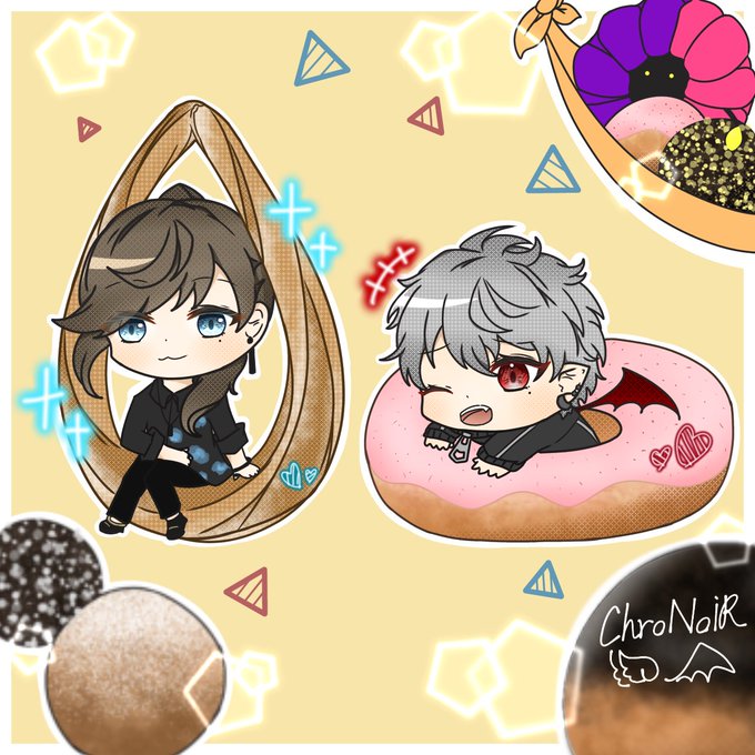 0 12 #くろのあとりえ #KuzuArt #かな絵 くろのわとドーナツと ふわっちクルーラー 23/05/08 19:30