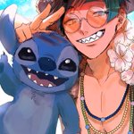 #ツイステファンアート スイスイフロイドとスティッチ🌊🌴