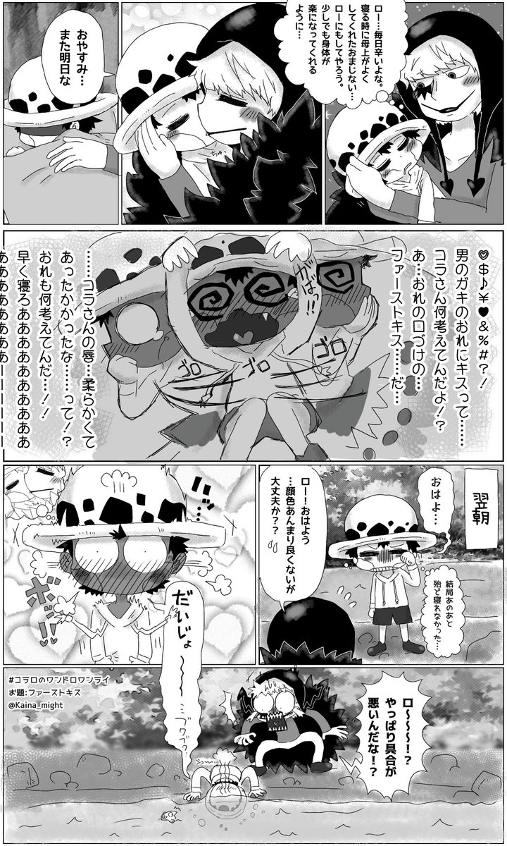 #コラロのワンドロワンライ お題:ファーストキス 事前作成+1h(文字入色塗時間外) 口💋してるのでワンクッションで失礼します。 ㊗️1周年おめでとうございます🎉主催者様いつも運営ありがとうございます!これからも楽しく参加と拝見させて頂きたいです💝