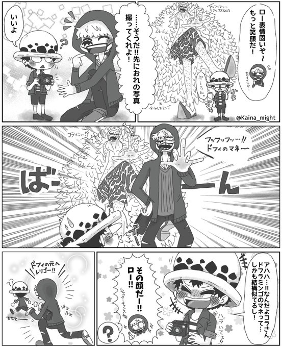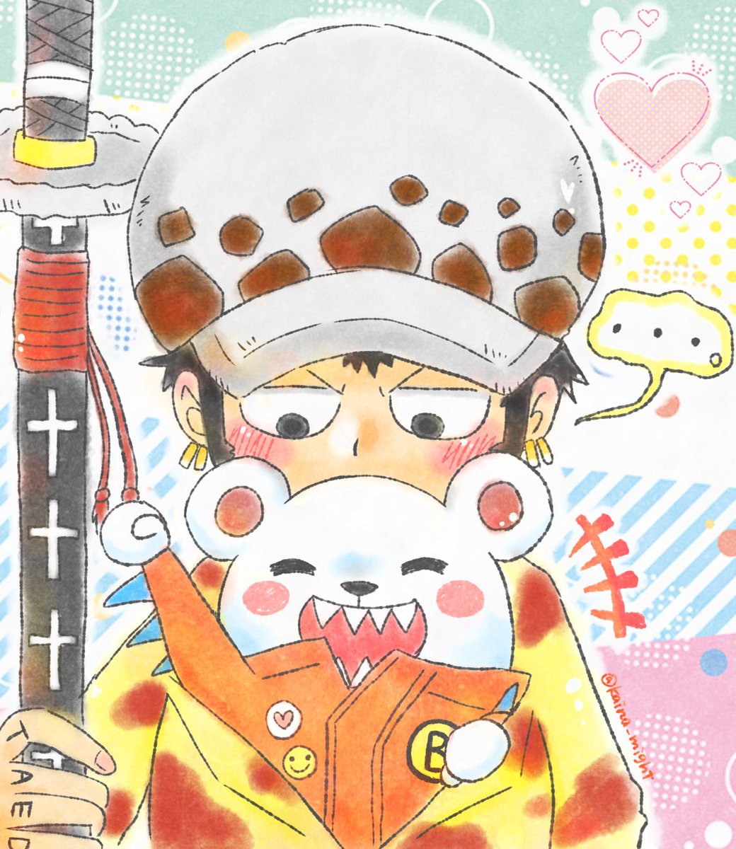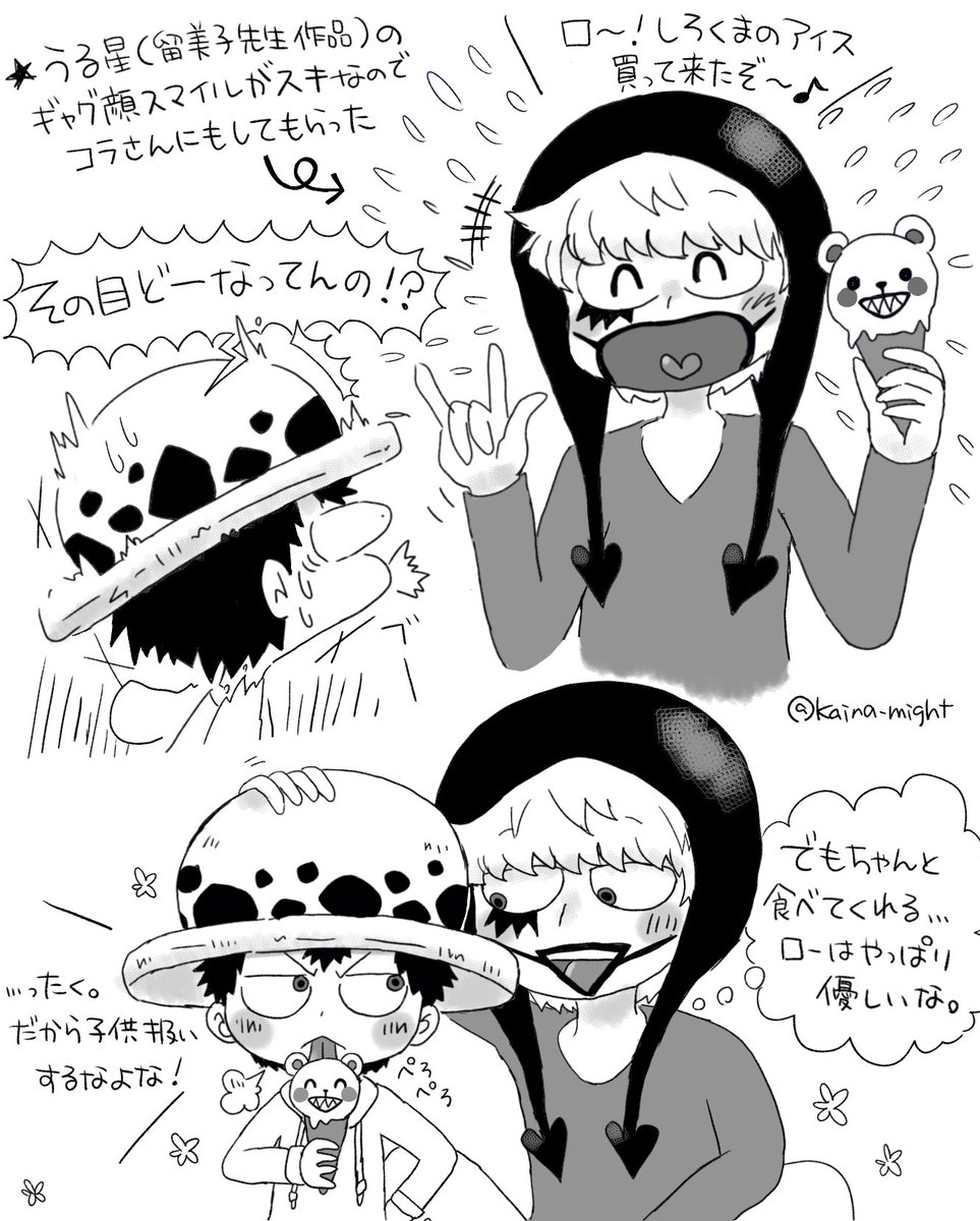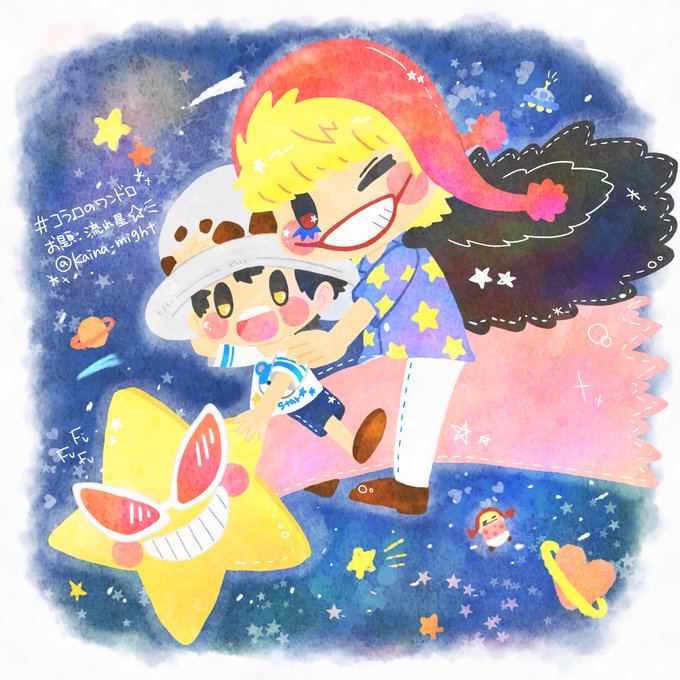 ロー誕生日おめでとう🎉海ソラ・ジェルマ友達な『ノース4』のみんなとお祝い! (『ワンピースパーティ7巻、放課後カラオケ』回に出てくるプリクラのちびっこVer.) #トラファルガー・ロー誕生祭2022 #トラファルガー・ロー生誕祭2022