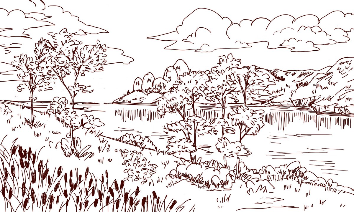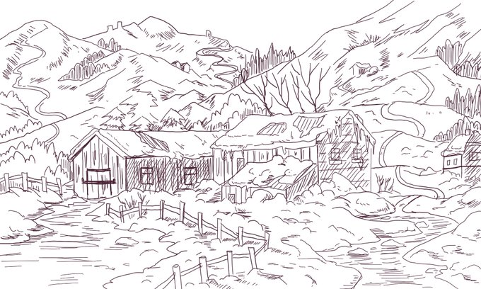 Day 01/30 My Rules: Done in under 1 hour, no colors, only lines. Only Landscapes. #inktober2022 #Drawtober2022