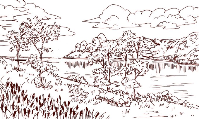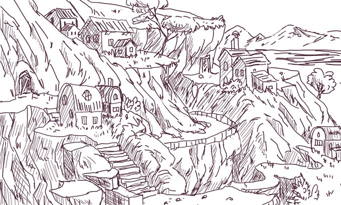 Day 06/30 My Rules: Done in under 1 hour, no colors, only lines. Only Landscapes. #inktober2022 #Drawtober2022