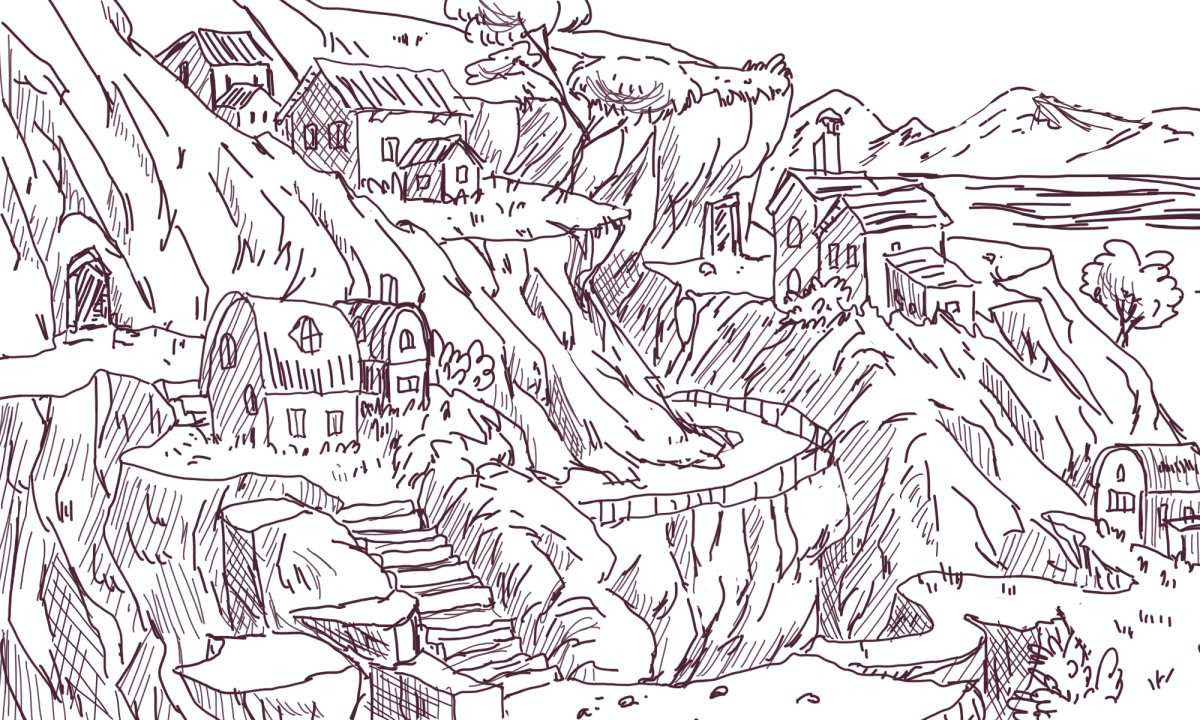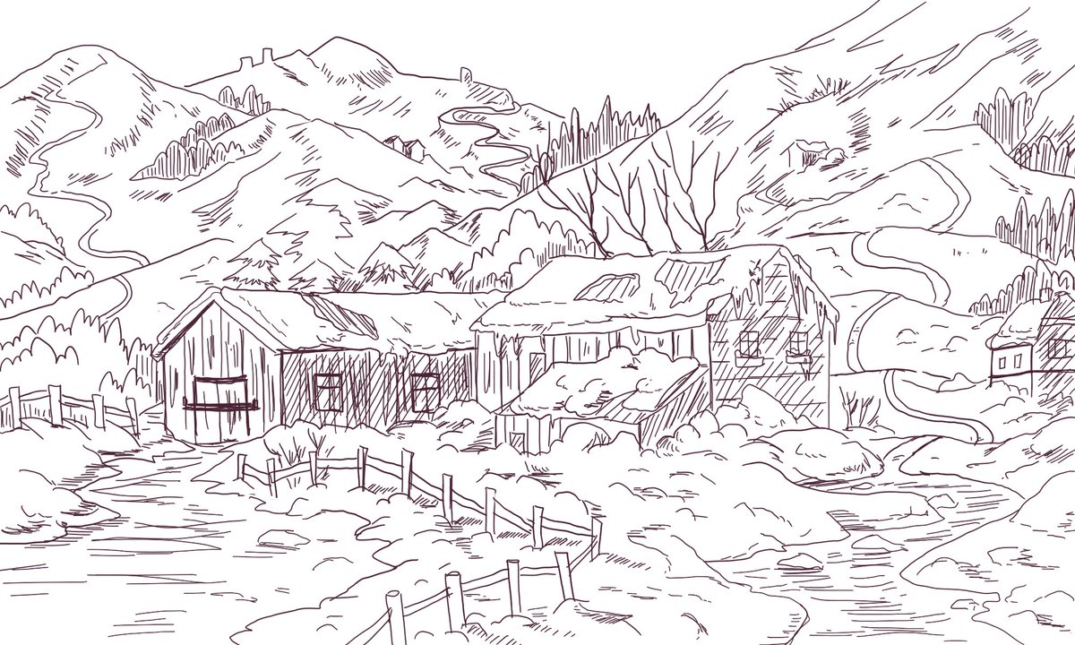Day 02/30 My Rules: Done in under 1 hour, no colors, only lines. Only Landscapes. #inktober2022 #Drawtober2022