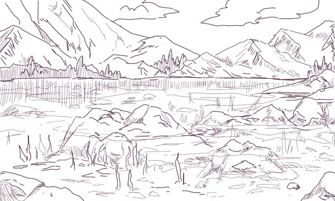 Day 12/30 My Rules: Done in under 1 hour, no colors, only lines. Only Landscapes. #inktober2022 #Drawtober2022