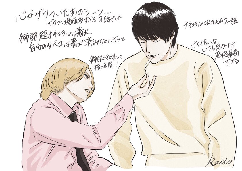 6 50 第8話好きなシーン多すぎてまとまらない😭とりあえず絶対ハズせない煙草シーン💕🚬 #ケイヤクあぶない相棒 #ケイヤク #イラスト好きな人と繋がりたい #イラスト #獅郎 #一狼 22/03/07 00:52