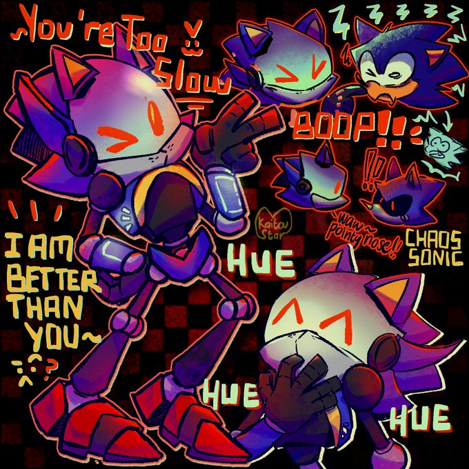 So I just had the urge to draw them in 'father and son being wholesome' dynamics :> #SonicTheHedgehog #MetalSonic #ClassicEggman #fanart #sonicfanartist #purr #cute #comic #fancomic