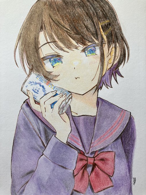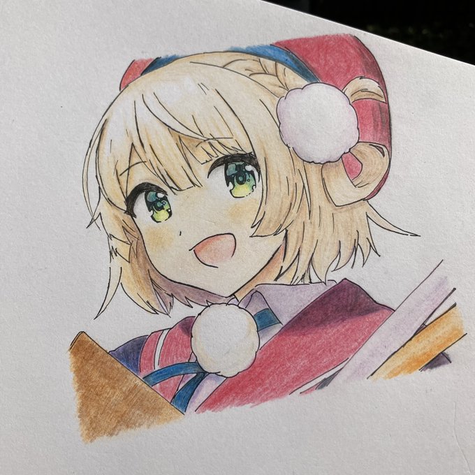 しぐれうい先生のTwitterから ホロライブ2期生 大空スバルさんを模写しました #プロテインザスバル #大空スバル #色鉛筆 #模写