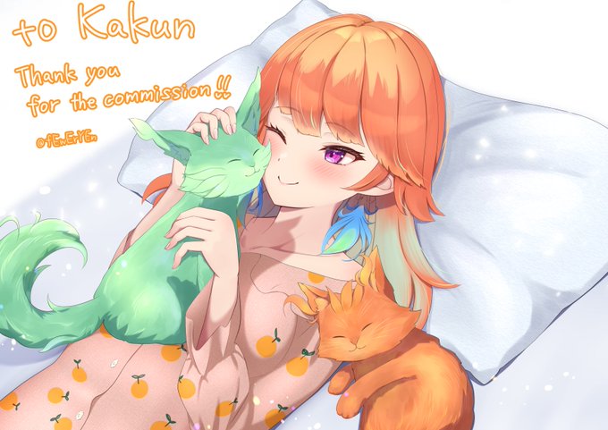 Kiwawa cuddling with her cats! I like this a lot. It's really cute 🥰 #ArtsOfAshes #キアラちゃん (I commissioned this art! Artist name is in reply)
