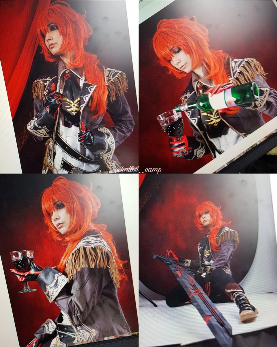 Here are some unedited previews pics of one set @vonkoenigsmarck and I made. Will show you the other preview sets too💕 Diluc: me instagram.com/kallisi__vamp Pics:vonkoenigsmarck #GenshinImpact #diluccosplay #dilucragnvindr @GenshinImpact #Genshinimpactcosplay