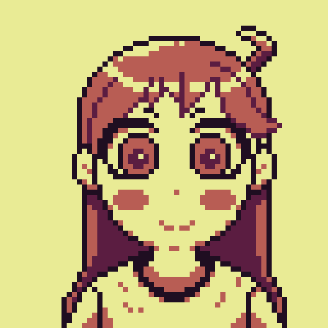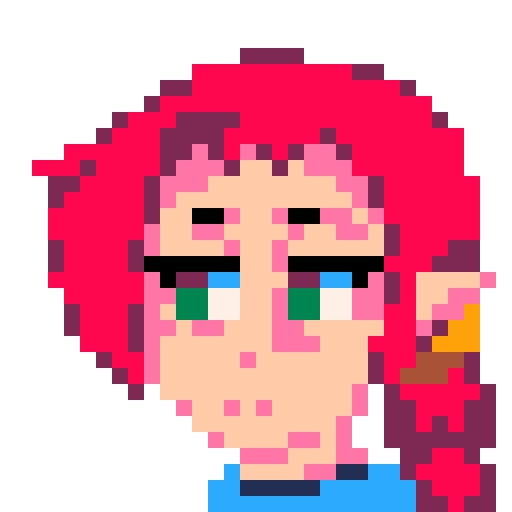 I made this OC for a game I believe a long time ago and I have tried to shape it over time, if I do a remake this is a possible portrait The girl's name is Elina, I still haven't been able to decide on the little horns #pixelart #ドット絵 #pixelartist