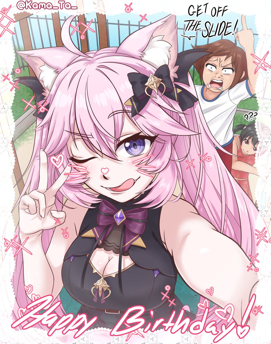 Local cat girl takes selfie in the most inconvenient place: A children's playground. More at 11 Happy Birthday Nyanners! @NyanNyanners #VShojoArt #nyanart #VShojo
