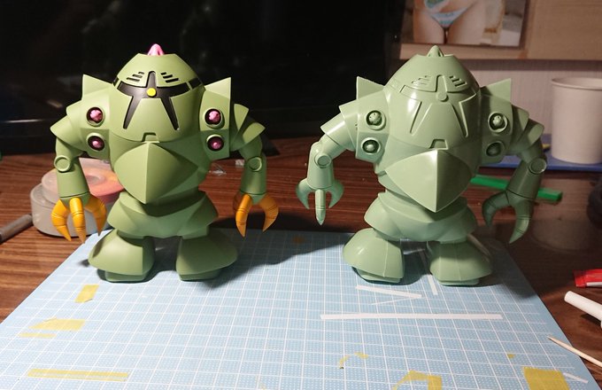 とりあえず、完成! 素組と並べてみた #ガンプラ #ガンダム #旧キット #ゾック #水泳部