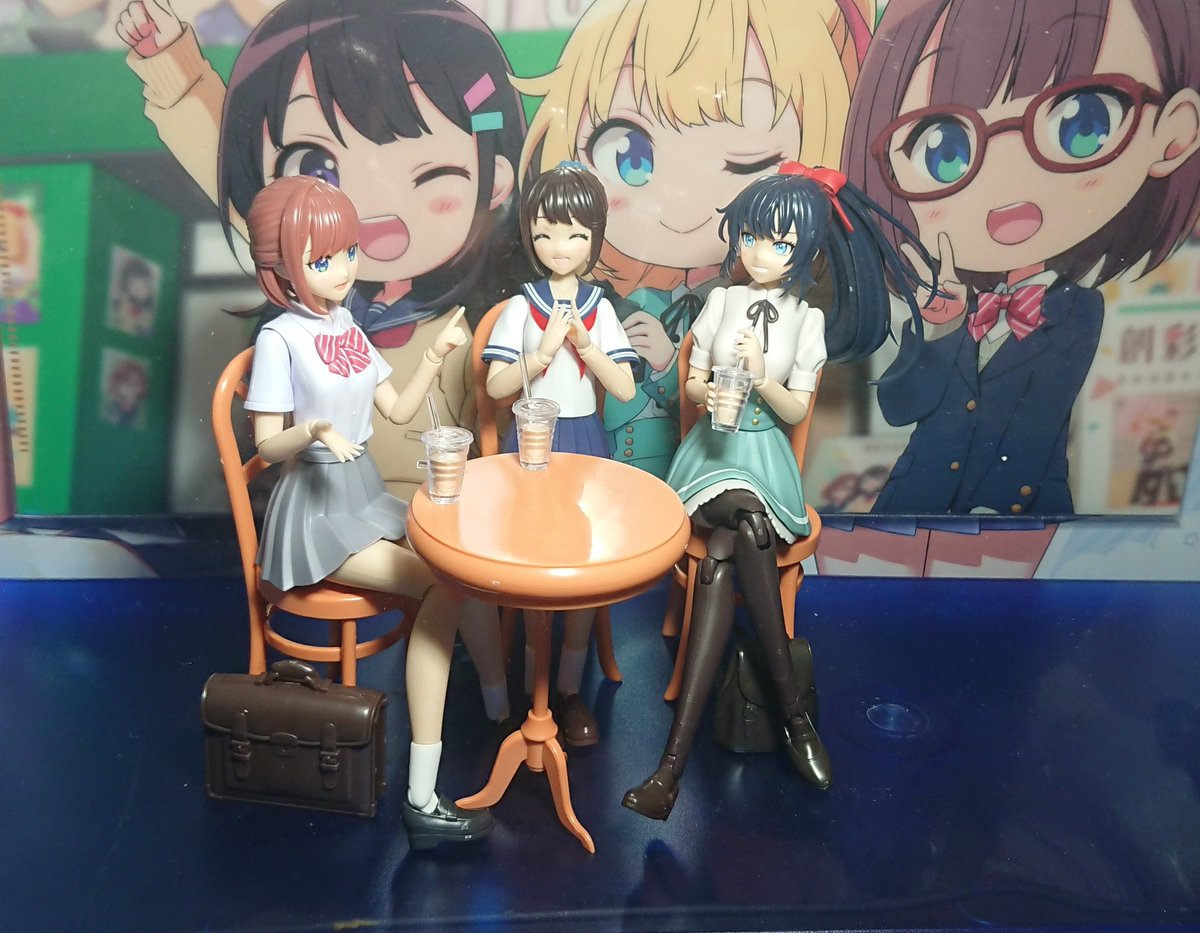 #創彩写真部 創彩少女庭園シリーズ新作「小鳥遊 暦 夏服ver」(通常カラー)遊びつつ飾る用完成 来月コトブキヤオンラインショップ限定版が届くo(*゚∀゚*)o 3枚目は、学校帰りにカフェで集まった(設定……(^^;)