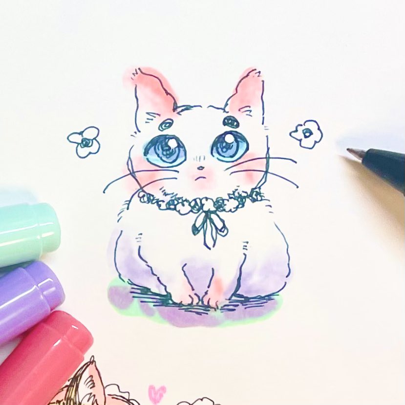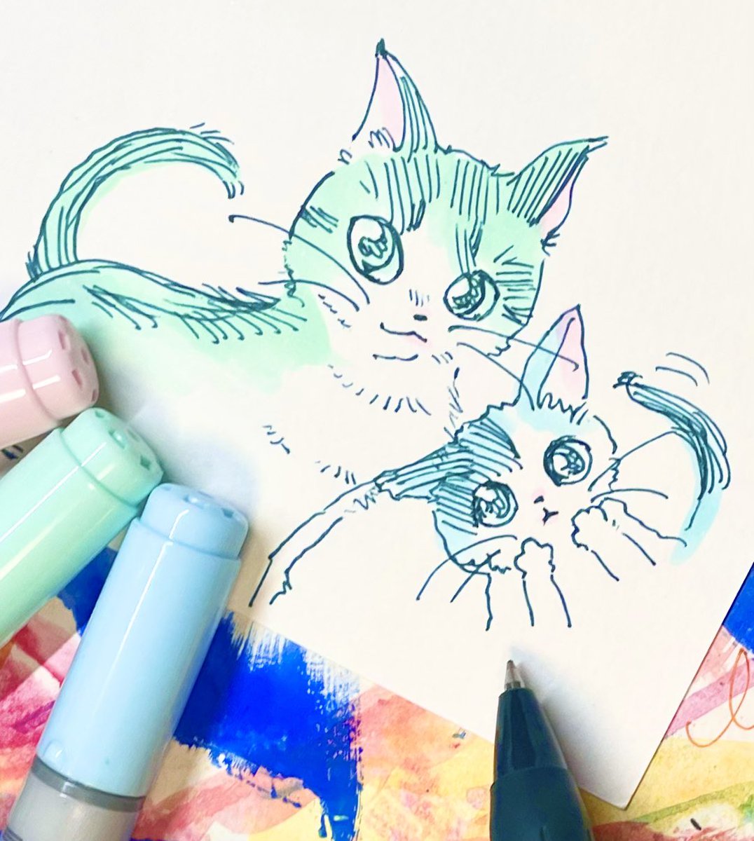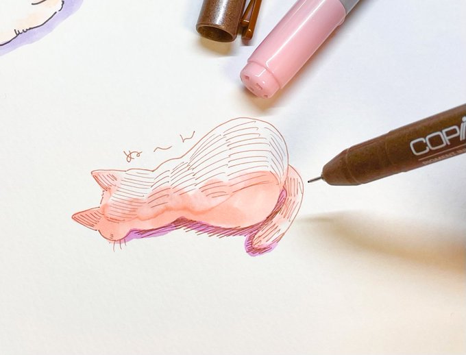 17 219 コピックやボールペンで描きました〜✨ 猫ちゃん大好き! #今月描いた絵を晒そう #絵描きさんと繋がりたい #猫好きさんと繋がりたい 22/09/30 19:34