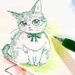 緑のぺんで描いた猫ちゃん #猫好きさんと繋がりたい #絵描きさんと繋がりたい