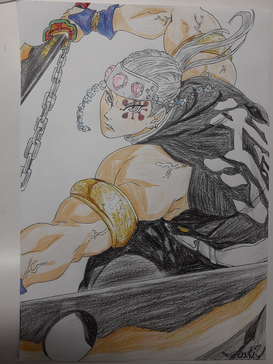 ペン止めまでできた! なかなかの自画自n...黙っときます。 #鬼滅の刃 #鬼滅の刃イラスト #音柱 #宇髄天元 #おえかき