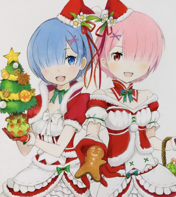 🎄⛄Merry X'mas🎅💫⛄🎄 なんとか間に合ったε-(´∀`*)ホッ✨ #Christmas #リゼロ #レム #ラム #模写 #クリスマスイラスト #色鉛筆 #プリズマカラー #お絵描き
