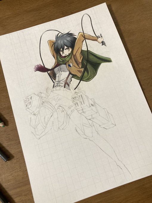 4 96 体調が悪かったので、ミカサの色塗りお休みしてましたが、今日から再開⸜(* ॑꒳ ॑* )⸝ マントだけで約5時間😇😇😇 でも、何とかいい感じ?🌸 #進撃の巨人 #ミカサ・アッカーマン #模写 #模写イラスト #色鉛筆 #色鉛筆画 #色鉛筆イラスト 22/02/05 03:33