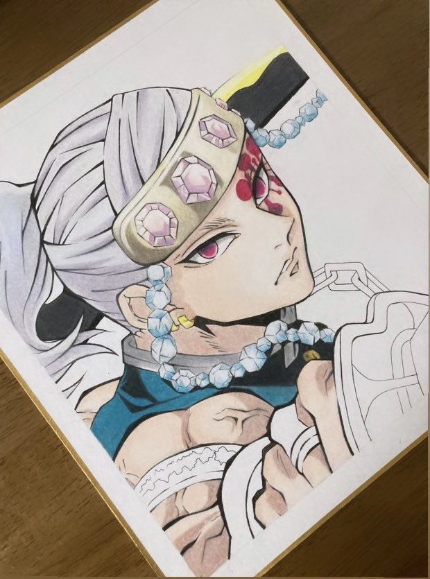 お友達の誕生日プレゼント用に♥️ 良きかな🤤🤤🤤♥️ #鬼滅の刃 #宇随天元 #模写 #誕生日プレゼント #色紙 #プリズマカラー #お絵描き