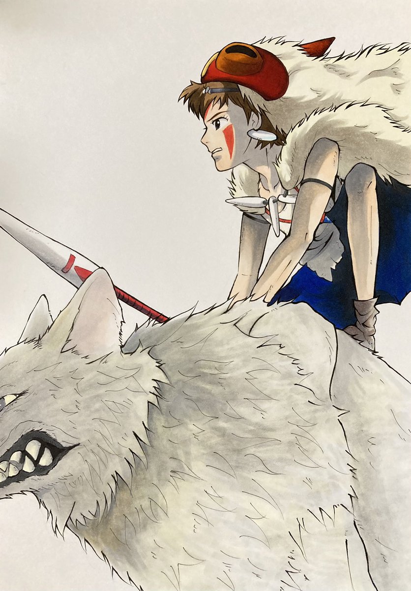 0 13 久しぶりのジブリでした🫶❤️ やっぱりサンかっこいい🤤⭐️ なかなかいい感じで描けたと思う👍🎶 #ジブリ #もののけ姫 #サン #模写 #模写イラスト #ohuhu #コピック #お絵描き #描いてみた 22/07/17 06:37