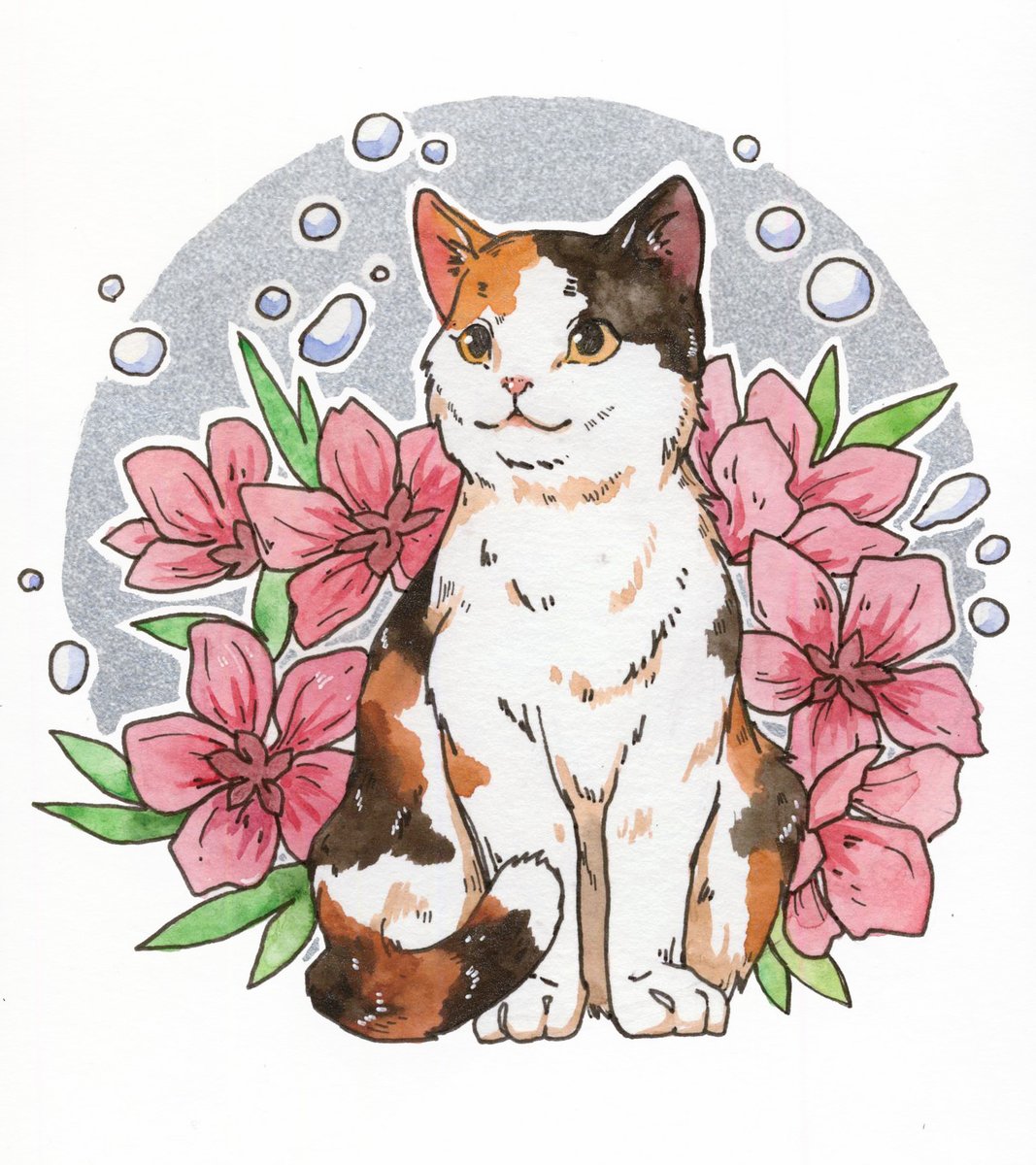 [29/31] Кот 🐈 Милый трёхцветный котик калико на удачу))) #inktober #inktober2020 #orientober #inktoberbest
